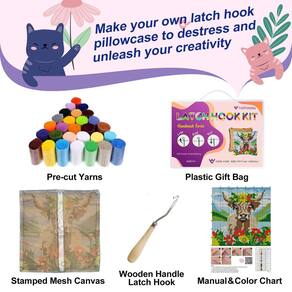 - 🎁?Presente popular?Procurando um presente especial? Nosso kit de travesseiros Latch Hook é perfeito para artesãos de todos os níveis de habilidade e idades. Você também pode transformar este kit de bricolage em uma fronha deslumbrante para sua pessoa amada, atemporal e impressionante!