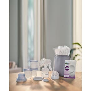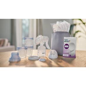 Nosso kit amamentação conta com 8 produtos Philips Avent diferentes para facilitar e auxiliar no período de amamentação, são eles: 1 Extrator Manual ; 1 tampa de fechamento para almofada; 1 Mamadeira Pétala 125ml; 1 Bico Pétala; 2 Tampas de fechamento mamadeira ; 1 Bolsa/Necessaire insolada ; 2 Copos de armazenamento de leite; 6 Absorventes de seios e 5 Bolsas de armazenamento de leite.