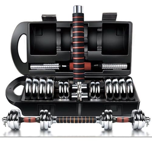 - Tenha seu equipamento profissional em casa; - Acompanha maleta com alça para que possa transportar para onde quiser; - Super versátil, ajustável para que você consiga treinar vários tipos de movimentos; - Com este equipamento você poderá treinar vários grupos musculares. Braços, pernas, costas, bíceps, tríceps, ombro e muito mais; - Super Fácil de Utilizar; - Você consegue ajustar o peso nas barras, de acordo com a sua necessidade; - As barras rosqueáveis são super fáceis de montar e desmontar; - Cuide do seu corpo e da sua saúde com um equipamento de qualidade superior; - A sua melhor opção para levar os seus treinos para um outro nível, queimar calorias, ganhar e fortalecer seus músculos;