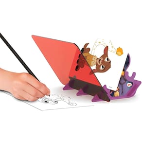 Conteúdo da Embalagem: 06 peças plásticas para montar 02 cartelas com 2 desenhos (4 no total) 01 lápis 01 bloquinho de folhas para desenhar Adesivos decorativos para o suporte Instruções de montagem Medidas Aproximadas: