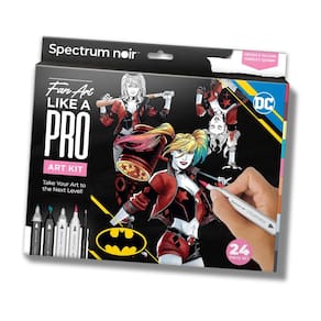 Use ferramentas de artista de nível profissional para retratar Harley em uma variedade de designs autênticos de personagens da DC. Este kit de arte oficialmente aprovado pela Spectrum Noir inclui cores escolhidas a dedo, arte de linha impressa de alta qualidade e um forro fino de qualidade. Siga as dicas criativas incluídas na caixa e online e leve sua arte para o próximo nível.