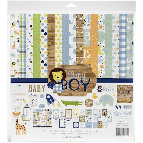 Echo Park Paper Company Kit de coleção Baby Boy Papel, azul, verde, menta, amarelo, 30,5 x 30,5 cm