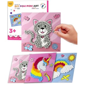 - Como funciona: nossos kits de arte e artesanato incluem três cartões de design de arte com seções que você pode remover para expor uma superfície pegajosa. A partir daí, você pode escolher entre uma variedade de pompons coloridos e espuma EVA para criar sua própria obra de arte.