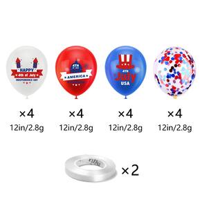 Tema de cores patrióticas: inclui balões vermelhos, brancos, azuis e de confete impressos com padrões do Dia da Independência dos EUA, ideais para celebrações festivas. Material de látex durável: feito de látex espesso de alta qualidade, não tóxico, ecológico e projetado para permanecer inflado por mais tempo para uso em eventos. Tamanho e quantidade perfeitos: vem com 16 balões de 12 polegadas (látex de 2,8 g de espessura) e 2 rolos de fita branca para facilitar a decoração. Uso versátil: ótimo para festas de 4 de julho, desfiles, churrascos, eventos patrióticos ou como decoração interna e externa. Fácil de inflar e exibir: compatível com ar ou hélio; perfeito para buquês de balões, peças centrais de mesa ou cenários de parede.
