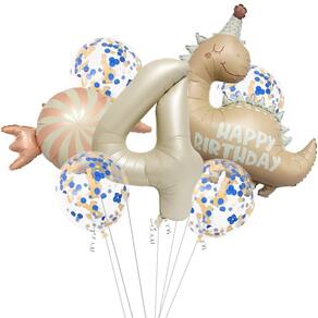Tema Charming Candy Dinosaur: Este adorável kit de balões apresenta um dinossauro doce de cor pastel com uma mensagem de “Feliz Aniversário”, perfeito para criar uma atmosfera extravagante para a festa de aniversário de uma criança. Materiais de alumínio e látex de alta qualidade: feitos de papel alumínio e materiais de látex duráveis, esses balões oferecem um acabamento brilhante e são projetados para permanecerem inflados por um longo tempo, garantindo que durem durante toda a celebração. Ideal para o 4º aniversário: o conjunto inclui um balão número “4" junto com um dinossauro doce e balões coloridos cheios de confetes, tornando-o a escolha perfeita para uma festa de 4 anos. Balões de confete coloridos: os balões de confete adicionam um toque de cor à decoração, complementando perfeitamente o dinossauro pastel e criando uma atmosfera divertida e festiva. Configuração fácil: o kit inclui todos os acessórios necessários para uma configuração descomplicada, incluindo gravatas e fitas, permitindo uma decoração rápida e fácil.