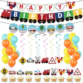 Conjunto completo para festas de transporte — inclui balões de látex coloridos, banner de papel “Feliz Aniversário”, coberturas de cupcake e decorações suspensas em espiral para uma celebração temática completa. Desenhos de veículos adoráveis — Apresenta carros de desenhos animados, ônibus, trens, aviões e sinais de trânsito, perfeitos para crianças que amam veículos e festas temáticas de aventura. Materiais premium — Feitos de látex durável, papel de alta qualidade e papel alumínio brilhante; seguros, não tóxicos e fáceis de montar para uma decoração duradoura. Cores brilhantes e divertidas — A combinação de balões laranja, amarelo e azul adiciona energia vibrante à sua atmosfera de festa, tanto em ambientes internos quanto externos. Perfeito para celebrações infantis — Ideal para aniversários, eventos em sala de aula ou reuniões familiares; cria um ambiente alegre e animado com tema de transporte.