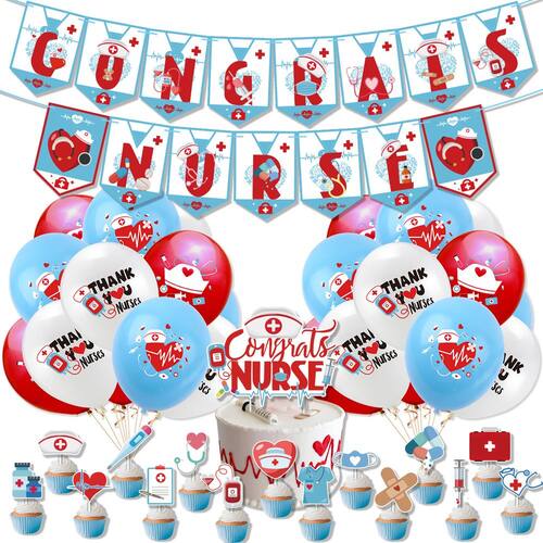 Conjunto completo de temas para enfermeiras — inclui banner, 18 balões de látex, 16 coberturas de cupcake, 1 cobertura de bolo e 2 fitas; tudo o que você precisa para uma festa de agradecimento ou formatura de enfermeira. Material de qualidade premium — Feito de látex durável e papel ecológico, oferecendo cores vivas e decoração duradoura que resiste a vazamentos de ar. Design médico profissional — apresenta padrões criativos como estetoscópios, batimentos cardíacos, seringas e ícones médicos em tons de vermelho, azul e branco. Fácil configuração e uso versátil — Rápido de montar e ideal para formatura de enfermeiras, eventos de agradecimento ou festas temáticas hospitalares. Cores brilhantes e alegres — O contraste atraente de balões vermelhos, brancos e azuis adiciona energia festiva e complementa lindamente suas fotos de comemoração.