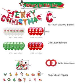 Conjunto completo de decoração de Natal: este pacote festivo inclui 24 balões de látex de alta qualidade, um banner de “Feliz Natal”, chapéus de cupcake de Papai Noel e renas e coberturas de bolo para uma festa de Natal alegre. Materiais duráveis de látex e papel: feitos com materiais premium de látex e papel, esses balões e decorações são perfeitos para criar exibições de férias duradouras em casa ou em locais de festas. Desenhos divertidos e festivos: com motivos divertidos de Natal, como Papai Noel, renas e flocos de neve, esses balões e decorações adicionarão um toque de capricho e charme a qualquer reunião de fim de ano. Configuração fácil para eventos de fim de ano: esteja você decorando uma árvore, criando um buquê de balões ou adicionando detalhes a um bolo, esses itens são simples de inflar, montar e exibir, facilitando o planejamento de suas férias. Ideal para festas e celebrações de Natal: perfeito para reuniões familiares, festas de Natal, eventos de Ano Novo e outras ocasiões festivas, este conjunto traz alegria e alegria para sua casa ou evento.