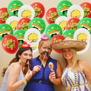 Tema mexicano vibrante — Inclui 15 balões de látex coloridos em vermelho, verde e branco, com designs divertidos de taco, sombrero e cacto que capturam o espírito festivo do México. Perfeito para festas de festa — Ideal para o Dia da Independência do México, Cinco de Mayo ou celebrações temáticas, adicionando energia brilhante e alegre à sua decoração. Material de látex de alta qualidade — Feito de látex espesso e ecológico que é durável, não tóxico e seguro para inflação de ar ou hélio. Fácil de usar e exibir — Os balões podem ser amarrados, pendurados ou agrupados em buquês; perfeitos para fundos de fotos, enfeites de mesa ou entradas de festas. Design divertido e festivo — Os padrões estampados exclusivos de tacos, bigodes e personagens musicais de cactos criam uma atmosfera animada e memorável para qualquer evento de festa.