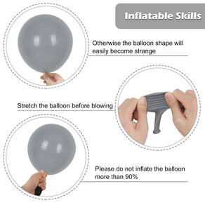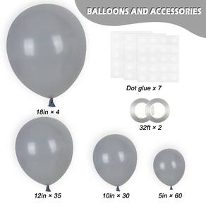 Material: látex Pacote: 129 balões cinza - 18 polegadas 4 unidades, 12 polegadas 35 unidades, 10 polegadas 30 unidades, 5 em 60 unidades e 7 peças de cola, 2 rolos de fita cinza Cenários aplicáveis: celebração, aniversário, revelação de gênero, formatura, despedida de solteira, casamento. Chá de bebê, chá de panela, Dia dos Namorados, Dia de Ação de Graças, Páscoa - Qualidade premium: feito de material de látex natural premium para durabilidade e não toxicidade. - Tamanho versátil: inclui 129 balões em tamanhos de 18, 12, 10, 5 polegadas para atender às diferentes necessidades de estilo. - Ampla aplicação: perfeita para festas, celebrações, festivais e outros eventos. - Fácil de usar: vem com fita e cola para decoração criativa de balões. - Precauções de segurança: É necessária a supervisão de um adulto devido ao risco de asfixia e ao odor de látex.