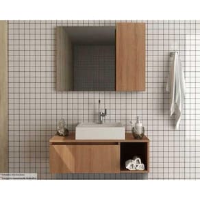 Conjunto de Banheiro Armário c/ Espelho BN3602 e Balcão Suspenso BN3601 c/ Cuba Pia BN3600 80cm cor Amêndoa - Tecno Mobili Abaixo segue os produtos do KIT: Conjunto de Banheiro Armário c/ Espelho BN3602 e Balcão Suspenso BN3601 c/ Cuba Pia BN3600 80cm cor Amêndoa - Tecno Mobili Gabinete de Banheiro Suspenso BN3601 1 Porta 80cm cor Amêndoa - Tecno Mobili