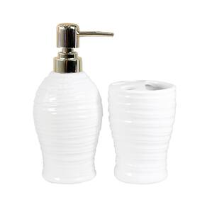 JOGO DE BANHEIRO DE CERÂMICA COM 02 PEÇAS COM DOSADOR DOURADO- 98514D