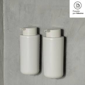 O Kit de banheiro Ou 2 peças da Linha Eleve conta com 2 dispensers que oferecem fixação segura. O Adesivo Ultra Click elimina a necessidade de furos, não faz sujeira e não causa danos às superfícies.Com capacidade de 500ml, é perfeito para shampoos e condicionadores, promovendo uso econômico e sustentável com refis. Seu design minimalista traz sofisticação, enquanto a válvula de fácil acionamento e o material resistente garantem durabilidade.INFORMAÇÕES TÉCNICASDimensões: LxAxP: 9x36x8 cm.Material: PS + PP + PVCCor: BrancoCUIDADOSSugere-se higienizar com sabão neutro e esponja macia, evitando produtos abrasivos no processo de limpeza.CONTEÚDO DA EMBALAGEM 2 Dispensers de parede (shampoo e condicionador)2 adesivo simples Ultra Click2 gabarito.SOBRE NÓSSomos apaixonados pelo que fazemos e utilizamos o design como meio de fazer você se sentir em casa onde estiver.Criamos produtos com carinho e cuidado para atender as suas necessidades diárias, levando bem-estar, aconchego e conforto para seu lar.Somos minimalistas e funcionais pois queremos que você tenha um estilo de vida mais leve e organizado, para atingir o máximo do seu potencial.Prazer, somos Ou.