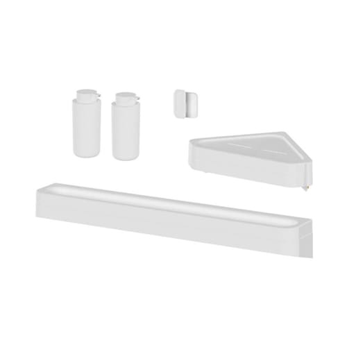 O Kit de banheiro Ou 5 peças da Linha ELeve conta com toalheiro de parede, prateleira de parede de canto, gancho de parede e dois dispensers de parede para shampoo e condicionador.Oferecem fixação segura e resistente. O Adesivo Ultra Click elimina a necessidade de furos, não faz sujeira e não causa danos às superfícies. Seus ganchos e adesivos suportam até 4kg, sendo perfeitos para fixação dentro ou fora do box para maior praticidade. Feito com material resistente suporta ambientes úmidos.INFORMAÇÕES TÉCNICASDimensões: LxAxP: 56x56x21 cm.Material: PS + PP + PVCCor: BrancoCUIDADOSSugere-se higienizar com sabão neutro e esponja macia, evitando produtos abrasivos no processo de limpeza.CONTEÚDO DA EMBALAGEM 1 Toalheiro de parede Ou Linha Eleve1 Prateleira de canto de parede Ou Linha Eleve1 Gancho de parede Ou Linha Eleve2 Dispensers de parede (shampoo e condicionador)SOBRE NÓSSomos apaixonados pelo que fazemos e utilizamos o design como meio de fazer você se sentir em casa onde estiver.Criamos produtos com carinho e cuidado para atender as suas necessidades diárias, levando bem-estar, aconchego e conforto para seu lar.Somos minimalistas e funcionais pois queremos que você tenha um estilo de vida mais leve e organizado, para atingir o máximo do seu potencial.Prazer, somos Ou.