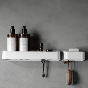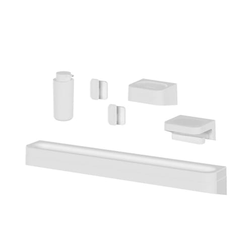 O Kit de banheiro Ou 5 peças da Linha ELeve conta com toalheiro de parede, prateleira de parede de canto, gancho de parede e dois dispensers de parede para shampoo e condicionador.Oferecem fixação segura e resistente. O Adesivo Ultra Click elimina a necessidade de furos, não faz sujeira e não causa danos às superfícies. Seus ganchos e adesivos suportam até 4kg, sendo perfeitos para fixação dentro ou fora do box para maior praticidade. Feito com material resistente suporta ambientes úmidos.INFORMAÇÕES TÉCNICASDimensões: LxAxP: 56x56x21 cm.Material: PS + PP + PVCCor: BrancoCUIDADOSSugere-se higienizar com sabão neutro e esponja macia, evitando produtos abrasivos no processo de limpeza.CONTEÚDO DA EMBALAGEM 1 Toalheiro de parede Ou Linha Eleve1 Prateleira de canto de parede Ou Linha Eleve1 Gancho de parede Ou Linha Eleve2 Dispensers de parede (shampoo e condicionador)SOBRE NÓSSomos apaixonados pelo que fazemos e utilizamos o design como meio de fazer você se sentir em casa onde estiver.Criamos produtos com carinho e cuidado para atender as suas necessidades diárias, levando bem-estar, aconchego e conforto para seu lar.Somos minimalistas e funcionais pois queremos que você tenha um estilo de vida mais leve e organizado, para atingir o máximo do seu potencial.Prazer, somos Ou.