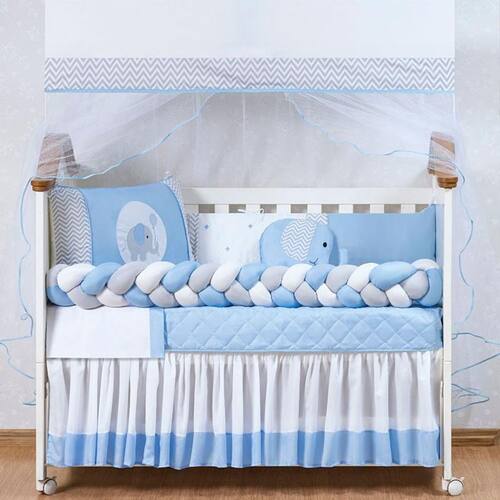O Kit De Berço Elefante Trança Azul Menino 11 Peças é perfeito para deixar o quarto do seu bebê ainda mais encantador. Com um design delicado e moderno, ele vai proporcionar conforto e segurança ao seu pequeno.