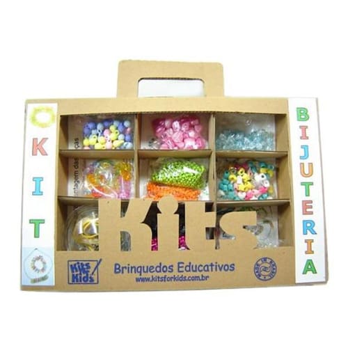 Kit de Bijuteria - Kits for Kids Kit de Bijuteria Grande - Kits for Kids Composto por um fio de silicone, 1 elástico colorido, correntinha de metal, fechos, argolas de metal, e miçangas. Total + de 200 peças para montagem de colares e pulseiras. Acompanha instruções de montagem e fotos de algumas peças. Você poderá fazer colares, pulseiras, gargantilhas, fru fru e tererê para cabelo. Estimula a coordenação motora, percepção visual e diferenciação de cores. Embalagem em papelão reciclado em formato de maletinha, onde a criança brinca e guarda as peças. Medidas da embalagem: 37x27x5 cm Idade: a partir de 6 anos. INMETRO CE-BRI/INNAC 00811-001 NM 300/2002 Ean: 7898942926662