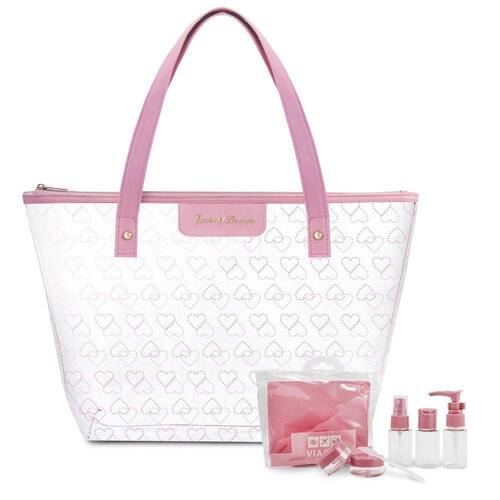 Kit Bolsa Shopper Transparente com Frascos de Viagem 7 Peças Jacki Design | Coleção LOVE