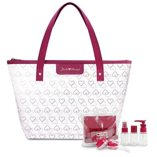 Kit Bolsa Shopper Transparente com Frascos de Viagem 7 Peças Jacki Design | Coleção LOVE