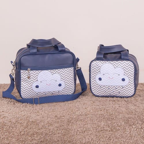 Pensando em trazer praticidade para o dia a dia das mamães e papais, o Kit Mala de maternidade é muito útil, além de usar na saída da maternidade, é uma ótima escolha para passeios em família, pois tem o espaço ideal para levar tudo que um bebê necessita. Composto por Kit Bolsas: 01 Bolsa Grande Impermeável: 28cm(altura) x 38cm(largura) x 23cm (profundidade) 01 de Bolsa Media Impermeável: 20cm(altura) x 29cm(largura) x 20cm (profundidade) Composição: Confeccionadas em Corino Forro interno: 100% PVC Qtd de pecas: 02 Obs: Bolsa Grande e Bolsa Media Impermeáveis