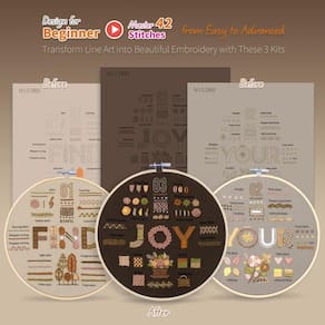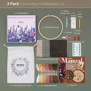 - Solução tudo-em-um: inclui 3 tecidos florais Find Your Joy pré-impressos, um aro ajustável de 18 cm, 13 cores vibrantes de fio dental, 16 agulhas, um enfiador de agulha e um folheto detalhado. Obtenha tudo o que você precisa para começar sua jornada de bordado em um kit.
