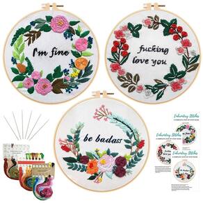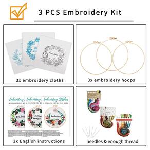 Características: 1?Kit de bordado para iniciantes com estampa. 2? ampla variedade completa de kit inicial de bordado com todas as ferramentas que você precisa para bordar. 3?Este lindo bordado é o projeto perfeito para fãs de bordados. Seria uma decoração de parede atraente para sua casa. 4?É um presente significativo para seus amigos e familiares. Especificações: Tamanho da argola: 19,8 cm Tamanho do tecido: 30 x 30 cm Conteúdo da embalagem: Incluído no pacote: 3 pacotes de ampla variedade completa de kits de bordado para iniciantes Cada kit de bordado vem com: 1 pano bordado com estampas. 1 aros de plástico para bordar. 1 x manual do utilizador (sem garantia de versão 2 agulhas de bordado. fio dental colorido Como usar o aro de bordado 1. Separe a moldura interna e externa. 2. Coloque a moldura externa na mesa plana (moldura virada para baixo) 3. Cubra o tecido liso bordado na moldura externa. (Bordado virado para baixo) 4. Pressione levemente a moldura interna na moldura externa com um pano bordado. (moldura interna virada para baixo) 5. Vire o tecido bordado para sentir o aperto, pode ser utilizado para bordado em estado apertado. - Bom conjunto de bordado: 3 conjuntos para kit inicial de bordado, incluem tecido de bordado com padrão, aro de bordado de plástico, instruções em inglês, agulhas de bordado e fio dental colorido. Ótimo conjunto para você terminar o lindo "faça você mesmo". - Fácil de usar: as ferramentas no kit de bordado são bem feitas e fáceis de usar. O aro de bordado pode ser ajustado por um parafuso, você pode apertar ou soltar os panos de bordado conforme precisar. Todos os fios coloridos são combinados com os padrões no tecido, utilizados fios diferentes para as diferentes partes. - Observações: O kit de bordado estampado apresenta tinta azul no tecido, que desaparecerá com água. NOTAS: não use água ou passe a ferro antes de terminar o kit. - 3 estilos de padrões populares: cada pano de bordado é impresso com um padrão de flor para facilitar o seu bordado, o que fornecerá grande ajuda para começar. - Presente popular: um bom pacote e presente apropriado para sua família, seus amigos; Bordado DIY acabado com seus amigos ou seus filhos é realmente um presente significativo e especial.