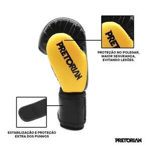 Conteúdo da Embalagem:. Contém 01 par de luvas Pretorian, 01 protetor bucal e 01 par de bandagens.