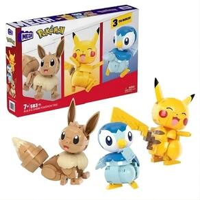 MEGA Kit de montar Pokémon, montar e mostrar com 3 bonecos de ação (583 peças) para crianças - Conjunto de bonecos Pokémon montáveis e articuláveis de 583 peças com Pikachu, Eevee e Piplup - Cada boneco tem 10 cm de altura com membros e caudas articulados para diferentes poses - As peças combinam com todos os conjuntos de montar Pokémon da MEGA e são compatíveis com outras marcas - Ideal para crianças a partir de 8 anos, estes brinquedos de construção ajudam a desenvolver a criatividade e habilidades de resolução de problemas - Oficialmente licenciado pela The Pokémon Company International