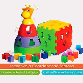 Kit de Brinquedos Educativos Infantil para Bebês 1 Ano Kit de Brinquedos Educativos Infantil para Bebês 1 Ano Menino e Menina Apresentamos nosso Kit de Brinquedos Educativos: Girafa Didática e Cubo Didático Estimule o aprendizado e a imaginação das crianças com esses incríveis brinquedos, são brinquedos seguros e de alta qualidade, feitos para durar e proporcionar momentos inesquecíveis. KIT COM 2 BRINQUEDOS: 1 Girafa Didática 1 Cubo Didático BENEFÍCIOS - Incentiva a Coordenação Motora - Incentiva o Raciocínio Lógico - Auxilia a Distingui Formas e Cores MEDIDAS: - Girafa: 30 x 16 cm - Cubo: 17 x 17 cm IDADE RECOMENDADA: - Girafa: 12 meses - Cubo: 12 meses : de 30 dias pelo Fabricante Aprovado pelo INMETRO PALAVRAS-CHAVE: Brinquedos Educativos, Brinquedos 12 meses, Brinquedos acima de 12 meses, Brinquedo 1 ano, Brinquedos Infantil, Brinquedos Menino e Menina Homologação Inmetro: IP-BRI-0531/2022-09
