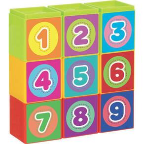 CUBINHOS 5 em 1 Brincando de empilhar, aprendendo encaixar formas e montar quebra-cabeças. Incentiva a distinção de cores, raciocínio lógico, coordenação motora e o equilíbrio. 1 - Aprendendo a empilhar 2 - 3 mini quebra-cabeças 3 - Aprendendo os números 4 - Aprendendo figuras diversas 5 - 9 formas geométricas para encaixar