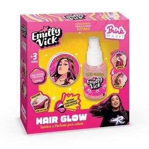 Kit de cabelo infantil turma dos rosa emilly vick hair glow com perfume e sombra capilar