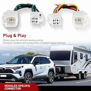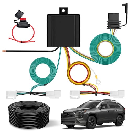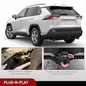 Nilight Kit de cablagem de reboque de 4 pinos 56434 conector padrão de veículo 4 vias personalizado para Mitsubishi Outlander 2019 2020 2021 2022 2023 2024 2025 Mitsubishi Outlander PHEV Toyota RAV4 - ESPECÍFICO DO VEÍCULO: Este chicote elétrico de reboque de veículo foi projetado para Toyota RAV4 2019-2024, Toyota RAV4 Prime 2021-2024, Mitsubishi Outlander PHEV 2023-2025. Conectores compatíveis com Autêntico para conectar ao chicote de fiação do seu veículo, localizado atrás do painel de acesso traseiro do motorista e do passageiro. - CONECTOR PADRÃO: Esta fiação de reboque 4 planos plug-in pode ser usada para conectar luzes traseiras do trailer, luzes de sinal de freio e seta. A fiação padrão de luz de reboque de 4 vias é popular em uma variedade de reboques, adicionando opções de reboque versáteis para o seu veículo. O conector de 4 vias será armazenado sob o seu veículo, perto do engate do trailer, quando a instalação for concluída. - FÁCIL DE INSTALAR: Sem corte ou emenda de fio de fábrica. Arnês Plug and Play. Este kit de fiação de reboque se conecta à fiação de fábrica existente em seu veículo e o equipa com um conector de fiação de reboque traseiro padrão de 4 pinos para conectar e rebocar um trailer. - Capa de pó: para promover o uso duradouro e resistência às intempéries, este chicote de fios de iluminação de reboque de 4 polos para Toyota RAV4 2019-2024, Toyota RAV4 Prime 2021-2024, Mitsubishi Outlander PHEV 2023-2025. Vem com uma capa protetora contra poeira de borracha justa. Cabe facilmente no conector plano de 4 vias quando não estiver em uso, protegendo-o contra elementos externos. - PACOTE INCLUI: Chicote de fiação de reboque de 4 pinos personalizado * 1, fecho de correr * 9, parafuso * 1, fusível 10A * 1, fio extensivo * 1