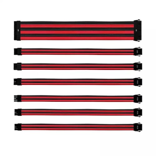 Kit De Cabo Extensor Sleeved Para Fonte Cooler Master Vermelho/preto Rdbk Gl Pvc 30 Cm 7 Cabos - Cma KIT DE CABO DE EXTENSÃO SLEEVED PSU 30 CM COM CAPA DE PVC COOLER MASTER - VERMELHO E PRETO - CMA-NEST16RDBK1-GL Comprimento do cabo de 30 cm; Tipo de fio 16 AWG; Manga protetora de 3 camadas Design; Conectores universais; 4 opções de cores. Gerenciamento de cabos com estilo O kit de cabo de extensão com manga oferece extensões de cabo ATX universais com capas de cabo coloridas de alta qualidade. O kit fornece 7 peças para cobrir todos os cabos principais do sistema e vem em cinco opções de cores disponíveis. O design protetor de três camadas oferece proteção contra vários perigos, como ácido e mofo, sem sacrificar a flexibilidade. Para completar, os cabos são feitos com fio 16AWG para melhor resistência ao calor e temperaturas ambientes mais baixas do que os cabos 18 AWG padrão da indústria. Quer sua fonte tenha cabeamento fixo ou modular, com este kit você pode gerenciar seus cabos com estilo.