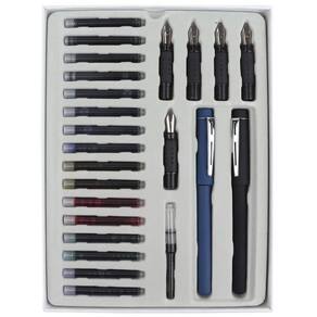 itens inclusos: estojo + 02 canetas + 01 conversor + 05 penas + 16 cartuchos + 01 bloco