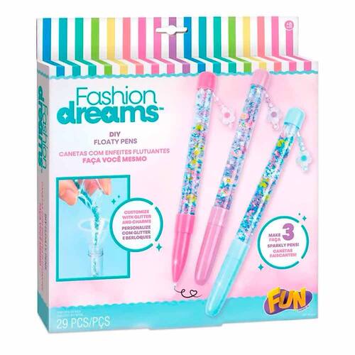 Kit de Canetas Infantil - Fashion Dreams - Enfeites Flutuantes - Fun Divirta-se: as crianças dão vida ao mundo da criatividade com os conjuntos Fashion Dreams. Elas podem criar, sonhar, compartilhar e fazer de novo! No melhor estilo “DIY” (Do It Yourself - Faça Você Mesmo), as crianças podem criar seus próprios conjuntos de canetas personalizadas Detalhes: • Essas canetas oferecem uma experiência única de personalização, permitindo que os pequenos desenvolvam suas habilidades artísticas de forma lúdica e educativa • Decore suas canetas com enfeites flutuantes para um toque especial e personalizado • As crianças podem dar asas à sua criatividade, desenhando e colorindo de forma única e personalizada • Adicione um pouco de emoção à rotina de lição de casa com essas canetas fashions • Instruções fáceis de seguir, as canetas terão um charme especial • Com 29 peças - para montar até 03 canetas personalizadas Informações: • Produto: Kit Canetas com Enfeites Flutuantes • Marca: Fun Divirta-se • Coleção: Fashion Dreams • Tipo: Conjunto de canetas • Categoria: Material Escolar • Subcategoria: Canetas • Estilo de brincar: DIY (Faça você mesmo) • Conteúdo: 29 itens - 01 folha de instruções - 01 bandeja de trabalho - 01 cordão elástico transparente de 1 m, - 01 mini funil de plástico - 01 saco de glitter - 01 saco de lantejoulas de coração - 01 saco de lantejoulas de flor - 01 saco de lantejoulas de bolinha - 01 saco de lantejoulas de flores pequenas - 01 saco de peças de argila polimérica no formato smiley - 01 saco de peças de argila polimérica no formato coração - 03 canetas - 03 contas de flores grandes - 12 contas redondas • Recomendação: para crianças a partir de 08 anos de idade Especificações: • Modelo: Kit Conjuntos de Canetas com Enfeites Flutuantes • Referência: F0151-6 • Código de Barras: 7908489407880 • Embalagem (C x A x L): 24 x 23 x 4.5 cm • Embalagem (Peso): 0.267 kg • Material / Composição: Plástico • Registro: 02115-000 / OCP 0061 • Certificado: Órgãos Autorizados - OCP´S (Organismos de Certificação de Produtos) Aviso: • As imagens são meramente ilustrativas • Os tamanhos e medidas são aproximados • As cores e estampas dos produtos podem ter variações • As informações são de responsabilidade do fabricante ou fornecedor