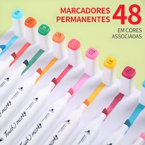 Este kit de canetas ponta dupla oferece 48 cores vibrantes, perfeitas para artistas e entusiastas do desenho. Com tampas codificadas por cores e design ergonômico, facilita a organização e uso prolongado. As pontas finas e largas oferecem versatilidade, permitindo linhas precisas ou traços mais largos. A tinta à base de água é rápida, não tóxica e segura. Vem com um estojo de transporte preto, ideal para presentes e para quem ama criar em diversas técnicas artísticas.