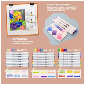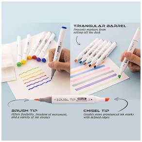 Design de ponta dupla. Você pode usar a ponta do pincel de para varredura, detalhes, caligrafia ou a ponta do cinzel de traços largos de 6, para colorir rapidamente em grandes áreas. Os marcadores de pincel de álcool são mais duráveis e não desfiam facilmente. NOTA Os marcadores à base de álcool, como TODOS os marcadores de álcool de outras marcas, irão sangrar através do papel colorido normal, exceto o papel muito grosso. Perfeito para fazer cartões, rabiscar e escrever à mão. Excelentes qualidades à prova de manchas e à prova dágua na maioria das superfícies, funcionam bem em cerâmica, plástico ou rocha. Materiais de artesanato criativos presentes para professores, crianças, amigos, Natal, Ação de Graças e aniversários. A tinta de alta qualidade combina perfeitamente para criar belos efeitos de coloração. O design do barril triangular oferece uma pegada confortável e evita que os marcadores rolem de mesas e mesas. Ideal para artes e ofícios profissionais Marca: Não Informado