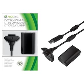 Kit load and play Xbox 360 Xbox inclui carregador e cabo. Ele permite que você jogue até 35 horas contínuas. Você pode jogar e ainda carregar seu controle. Comprimento do cabo 1,44 mts. Carga completa em 4 horas.