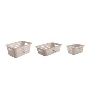 São diversas opções de cestas com cores que combinam com qualquer ambiente da sua casa. A linha foi desenvolvida priorizando o cuidado com a sua rotina, por isso, possui furos que facilitam a ventilação e bordas maiores que facilitam a pega e o transporte. As cestas são produzidas em plástico atóxico (polipropileno) com textura externa para diminuir riscos e arranhões e acabamento fosco na superfície interna.Na lavanderia ou no quarto, para uma casa organizada e com mais cor, as cestas organizadoras são suas aliadas perfeitas para auxiliar no seu dia a dia.INFORMAÇÕES TÉCNICAS Dimensões: LxAxP: 20x13x29cm. Material: PP (Polipropileno) Cor: BegeCUIDADOS Sugira-se higienizar com sabão neutro e esponja macia, evitando produtos abrasivos no processo de limpeza.CONTEÚDO DA EMBALAGEM 1 Cesta Organizadora P 1,5 Litros 18,5 x 14,5 x 8 cm1 Cesta Organizadora Baixa M 3,3 Litros 29 x 19,5 x 8,5 cm1 Cesta Organizadora M 5 Litros 29 x 19,5 x 12,5 cmSOBRE NÓS Somos apaixonados pelo que fazemos e utilizamos o design como meio de fazer você se sentir em casa onde estiver. Criamos produtos com carinho e cuidado para atender suas necessidades diárias, proporcionando bem-estar, conforto e conforto para seu lar. Somos minimalistas e funcionais pois queremos que você tenha um estilo de vida mais leve e organizado, para atingir o máximo do seu potencial.Prazer, somos Ou.