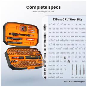 • Capacidade: 152 peças (140 bits CR-V + 4 bits longos + 12 acessórios)?