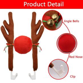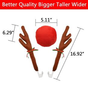 Abnaok Chifres e nariz de rena de carro - telhado de janela e grade Rudolph Rena Sino Jingle Bell Acessórios para automóveis - Divirta-se decorando seu carro nesta temporada de Natal com este conjunto de nariz e chifre de rena! - Feito de tecido e plástico, o material é resistente às intempéries (não à prova de intempéries). - Adequado para todos os modelos de carro, você pode decorá-lo na Páscoa, Halloween, festival de Natal, adiciona diversão durante o feriado enquanto dirige pela estrada. - Os dois chifres são fáceis de instalar nas viúvas, o nariz vermelho se fixa facilmente à grade frontal do carro. - Conteúdo da embalagem: 2 chifres de rena de 43 cm, 1 nariz vermelho de 15 cm