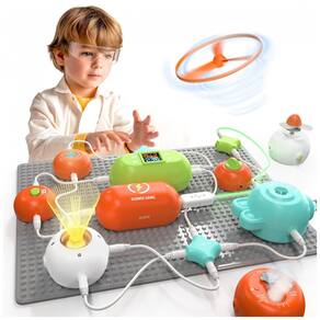 O conjunto acompanha um manual colorido de cerca de 37 páginas e cartões de indicação que explicam, em mais de 100 esquemas primários, como montar diferentes projetos de luz, som, movimento e efeitos especiais, a partir dos quais a criança pode criar variações. O sistema utiliza alimentação por pilhas AA (não incluídas), trabalha em baixa tensão e foi projetado para uso em casa ou sala de aula como apoio a conteúdos de ciências, raciocínio lógico e criatividade.
