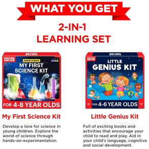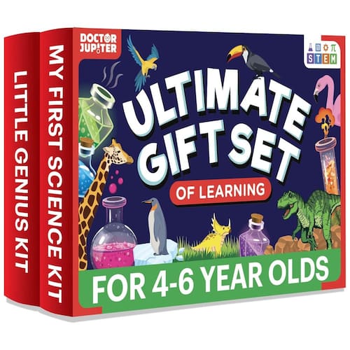 Este conjunto de presentes de aprendizagem Doctor Jupiter Ultimate é ideal para crianças de 4 a 6 anos. Composto por uma coleção distinta de kits educacionais e de aprendizagem, é perfeito para celebrar ocasiões especiais como Natal, aniversários e conquistas. O kit científico Doctor Jupiter My First Science Kit oferece 50 experimentos divertidos e seguros para ajudar as crianças a desenvolver um amor precoce pela ciência, sem precisar de telas. Além disso, o conjunto inclui 5 brinquedos educativos de aprendizagem precoce especialmente selecionados para crianças de 4 anos ou mais, que ajudam a fortalecer habilidades motoras e ampliar o horizonte de pensamento. Projetado especificamente na abordagem STEM, este conjunto de presentes ajuda as crianças a adquirir conjuntos de habilidades para a vida toda. Todos os kits de aprendizagem incluídos atendem aos mais altos padrões em brinquedos, seguindo as normas de segurança da ASTM F96317 dos EUA. Com equipamentos premium, ferramentas inovadoras e manuais de instruções abrangentes, este conjunto certamente proporcionará uma experiência perfeita para você e seu filho. E se ainda assim você não estiver satisfeito, oferecemos um reembolso de 100 sem fazer perguntas