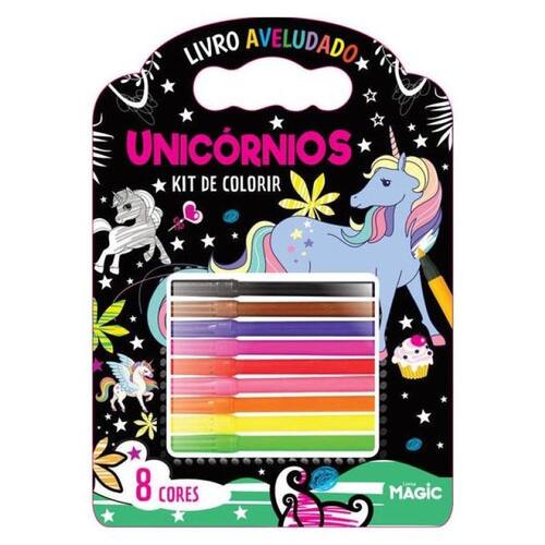 Deixe a imaginação voar para terras mágicas com este encantador kit de colorir! O livro de páginas em veludo traz desenhos delicados de unicórnios para colorir com as canetinhas inclusas. As crianças vão se divertir em dar cores e brilho aos majestosos unicórnios, criando seu próprio reino de fantasia.
