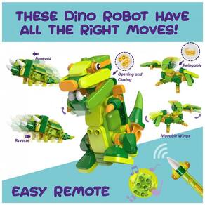 Uma nova experiência divertida de construção e jogo: Usando o controle remoto incluído, as crianças podem fazer suas criações de brinquedos de dinossauros avançarem e reverterem, além de criar sons audíveis divertidos Construir com peças diferentes não apenas criará dinossauros com aparências diferentes, mas também mudará a maneira como cada dinossauro se move A criatividade é incentivada até o controle remoto pode ser personalizado Seu filho certamente vai se apaixonar por estes brinquedos de aprendizagem perfeitos