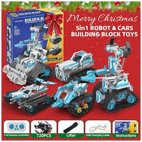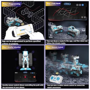 Controle remoto: o robô possui um alto grau de simulação e um design futurista no estilo de veículo, combinando os recursos de blocos de construção e carros de controle remoto para uma experiência de jogo mais envolvente. Os quatro motores no chassi grande permitem a funcionalidade completa do controle remoto, incluindo o jogo de interação de vários carros de 2,4 GHz, um controle remoto de até 30 metros e movimento em todas as direções.