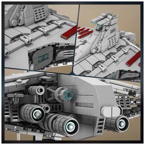 Este modelo de cruzador de ataque da República da classe Venator é uma réplica impressionante, com 45 centímetros de comprimento, 23 centímetros de largura e 18,5 centímetros de altura. O kit contém 1320 peças feitas com materiais duráveis e resistentes, incluindo tijolos de plástico ABS de alta qualidade que são resistentes ao desgaste. Cada peça é meticulosamente projetada usando a tecnologia MOC para criar muitos detalhes e recursos realistas. O conjunto de brinquedos contém muitos blocos de construção, todos os componentes são classificados e embalados cuidadosamente para que não sejam perdidos. As instruções de instalação estão incluídas para que você possa começar cada etapa. Este modelo é compatível com a maioria dos blocos de construção semelhantes no mercado, com forte escalabilidade. Além disso, é uma ótima ferramenta para brincadeiras e educação, ajudando a desenvolver habilidades em áreas como matemática, ciências e engenharia. Este modelo é uma ótima escolha de presente para qualquer ocasião, como aniversários, Natal, Ano Novo, Hanukkah, Páscoa, acampamentos de verão e muito mais. Aproveite a satisfação de construir um modelo de navio para garrafas de alta qualidade que impressionará adultos e crianças.