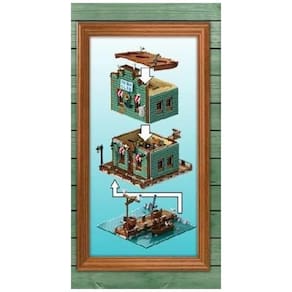 General Jims Harbortown Fishing Club Shop Blocos modulares de construção Tijolos de brinquedo Conjunto de modelos de construção para adultos e crianças. Estilo arquitetônico clássico com 3265 peças. O modelo foi desenhado com base no cenário real da cidade de praia do pescador e da casa de madeira. Os detalhes da decoração interior são ricos, e o pátio da porta, janelas, mesas e cadeiras e pontes de madeira são exibidos. Compatível com todas as principais marcas de construção de tijolos Marca: Não Informado