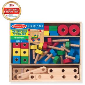 Este conjunto de construção de madeira Melissa Doug em uma caixa vem com 48 peças de madeira, incluindo porcas, parafusos, barras perfuradas para conectar e uma chave de fenda infantil para ajudar os construtores iniciantes a realizar o trabalho. O conjunto inclui 12 parafusos, 8 porcas, 16 tábuas de construção, 6 blocos, chave de fenda e caixa de armazenamento que se torna parte da peça. Impressos na resistente caixa de armazenamento estão planos de construção para um guindaste, motocicleta, avião e carro de corrida para começar a diversão. Com um pouco de imaginação e algumas reviravoltas criativas, as crianças também podem criar centenas de outras estruturas incríveis Sempre que as crianças brincam com este conjunto durável, elas desenvolvem habilidades motoras finas, habilidades de resolução de problemas e coordenação olho mão. As atividades de extensão incluídas orientam os pais para atividades educacionais que também desenvolvem habilidades matemáticas iniciais. Este conjunto de construção é um presente educativo para crianças de 4 a 6 anos. Adicione os blocos de unidades padrão Melissa Doug para completar a experiência de jogo prático e dar às crianças uma opção envolvente para diversão sem tela.