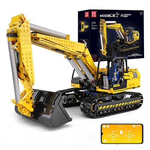 O caminhão escavador RC Mold King 13112 é um brinquedo de construção com cerca de 1830 peças, que permite a montagem e controle remoto do veículo após a conclusão. O brinquedo possui cabine giratória de 360 graus, braço oscilante flexível e pá, além de esteira resistente ao desgaste para se mover em diferentes terrenos. Todas as peças são acondicionadas em embalagens independentes e sacos numerados, facilitando a montagem. O conjunto vem acompanhado de um manual detalhado com etapas claras, tornando o fácil de montar, mesmo para crianças ou iniciantes. Este brinquedo de construção é uma excelente opção para presentear crianças, pois além de ser divertido, ajuda no desenvolvimento de habilidades práticas, paciência, criatividade e imaginação. O controle remoto pode ser feito através do controle remoto ou do celular, com suporte a 2 modos de controle remoto e função de programação. É um presente ideal para aniversários, dia das crianças e Natal.